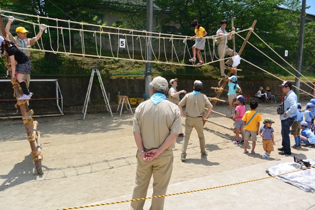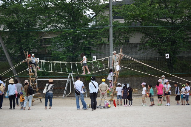 5月24日に千二小学校の千二カーニバルで奉仕活動をしました ロープを使った大型建造物 "モンキーブリッジ" とくに怪我などもなく無事に終えることができました