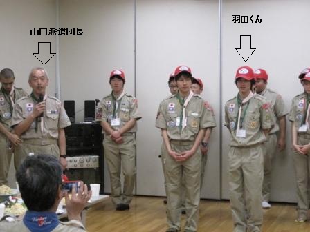 吹田地区からは、参加スカウトとして羽田くん1名、派遣団長に我らが山口地区委員長が参加しています。