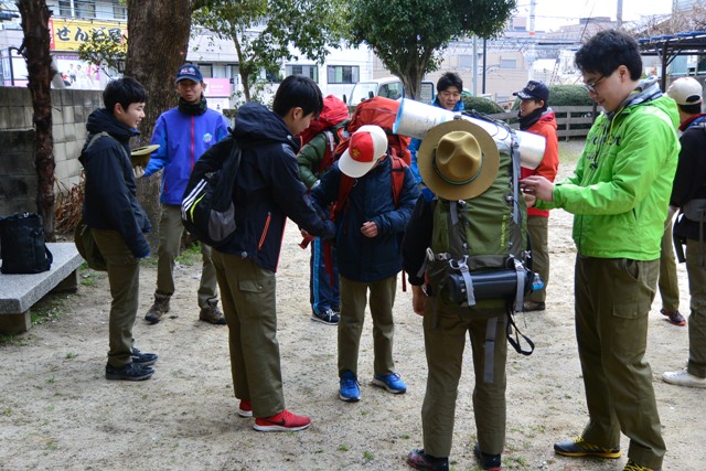 さて出発時はボーイ隊のザックチェック。