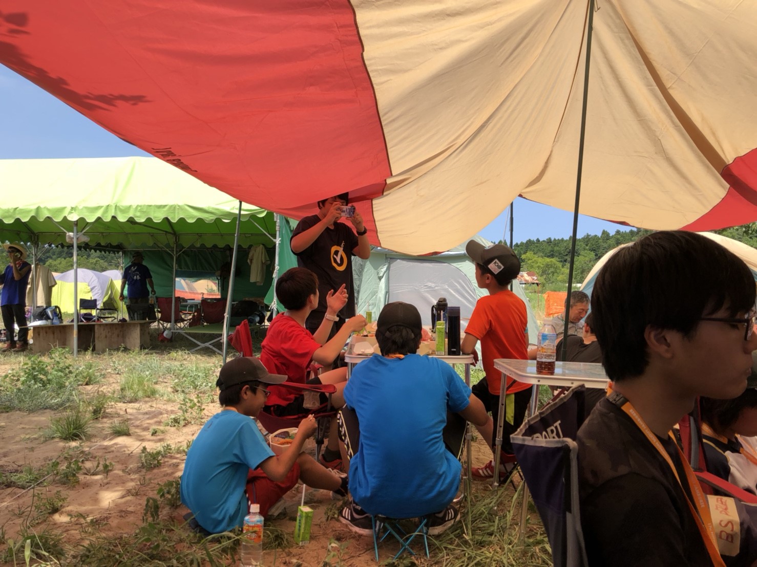 今日で設営もほとんど終わり、明日はゲート作りとキャンプファイヤーのスタンツの練習、開会式です。