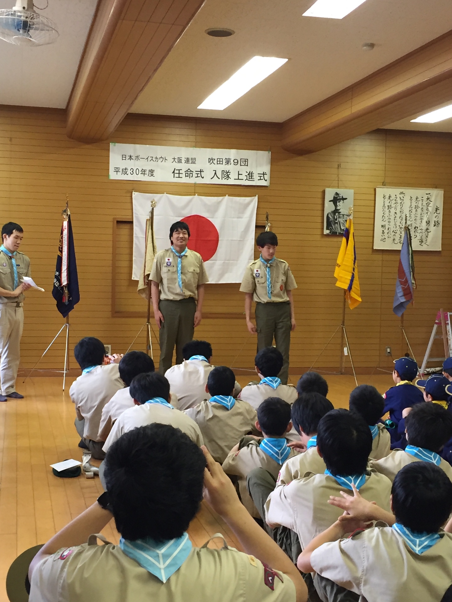 吹田9のベンチャー隊は、9月に上進ですので、団の入隊上進式では披露だけです。