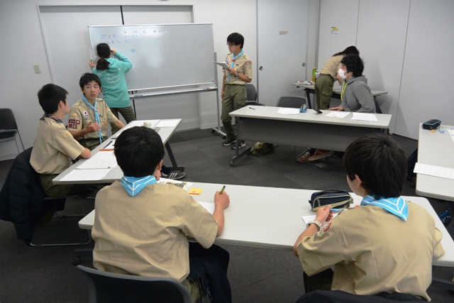 4月からローバースカウトに上進するスカウトは、アドバイザー的な立場。