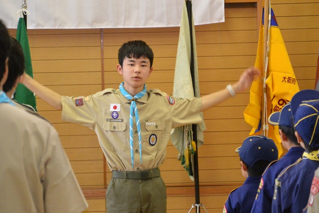 そして本日、ベンチャーデビューした吹9スカウトが、閉会式のソング指揮。