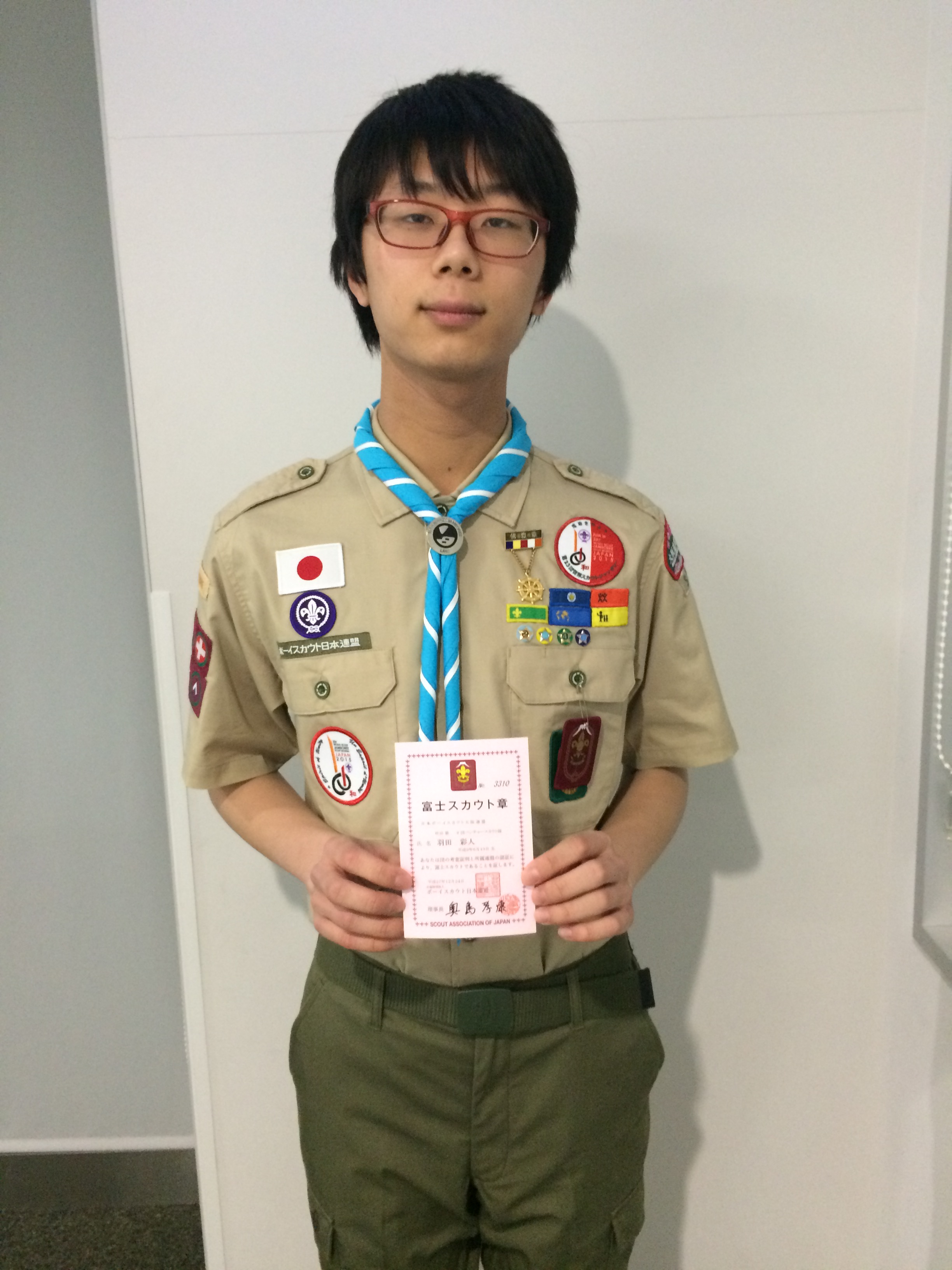 3月12日(日)、大阪連盟富士章受章スカウト激励会に、今岡智輝くんが出席してきました。