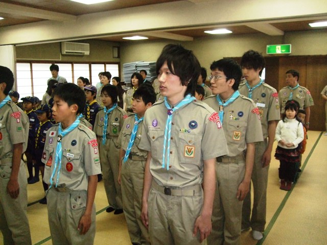 議事録を見ると9団からはスカウト3名、リーダー1名となっていましたが、写真からはスカウト2名しかわかりません・・・。